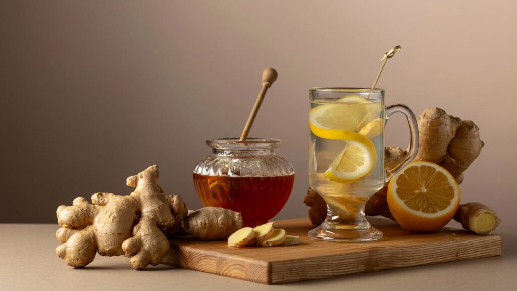 O gengibre possui propriedades anti-inflamatórias e antioxidantes, ajudando a reduzir o risco de infecções e melhorando a circulação sanguínea.